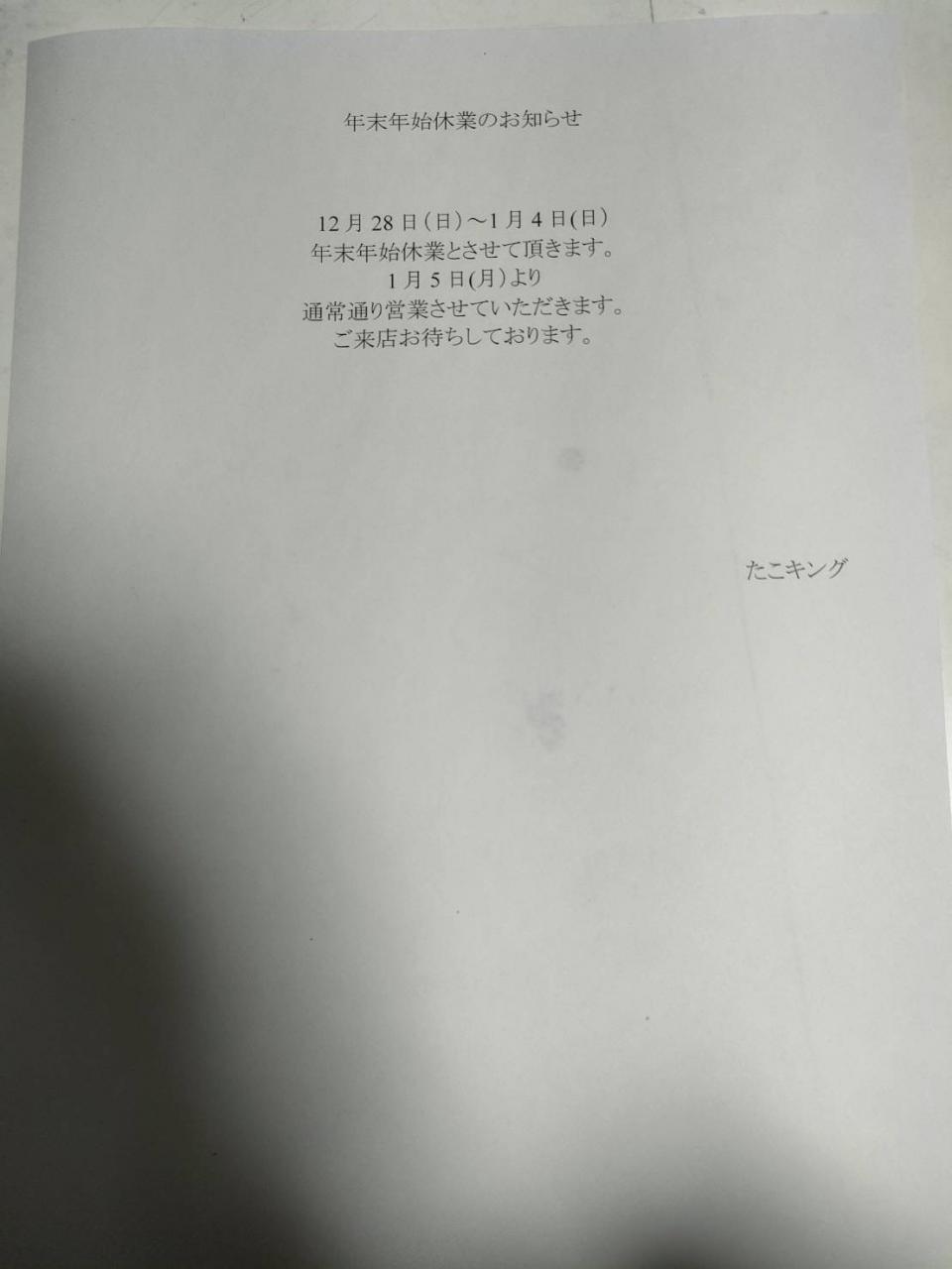 #たこキング #三重県 #四日市市 #営業時間変更のお知らせ